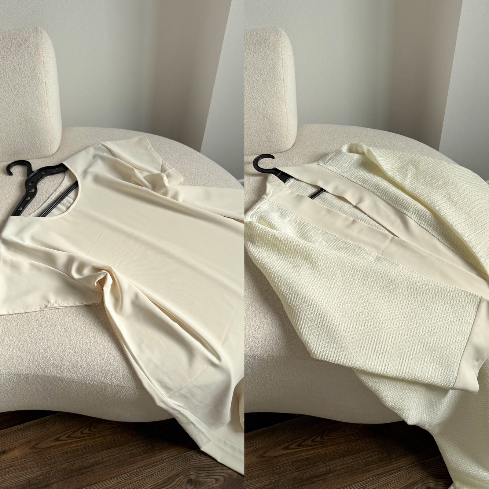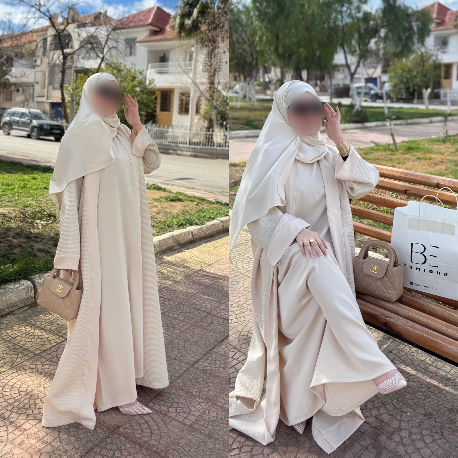 مصنوعة من tissu Chanel de haute qualité + crêpe ليمنحكِ ملمسًا راقيًا وثباتًا جميلًا مع حركة انسيابية أنثوية.